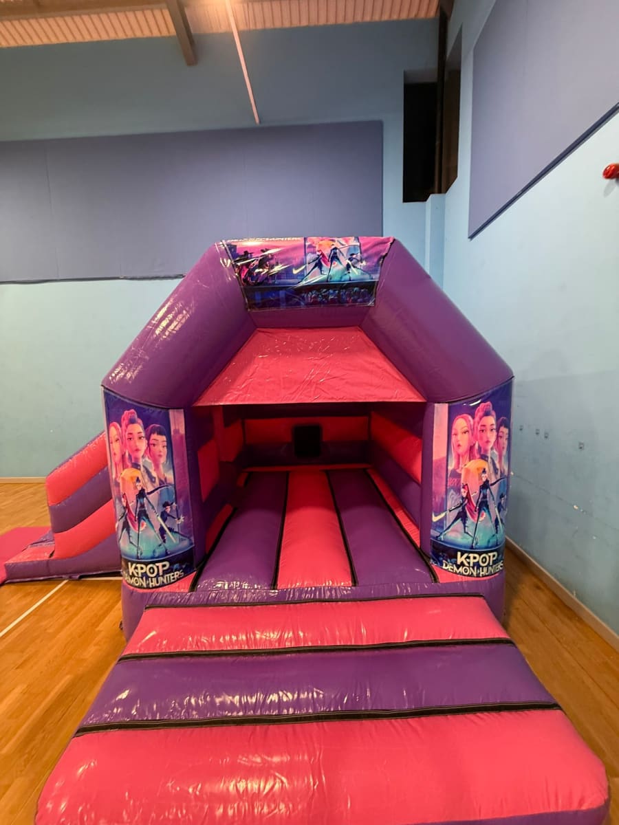 Get the ultimate KPop Demon Hunters Party Bouncy Castle for energetic, themed fun. 🎉 This KPop Bouncy Castles is available to hire in Essex, London, Hertfordshire, Cambridgeshire, Suffolk and offers you a KPop themed bouncy castle for safe jumping tailored for KPop fans!