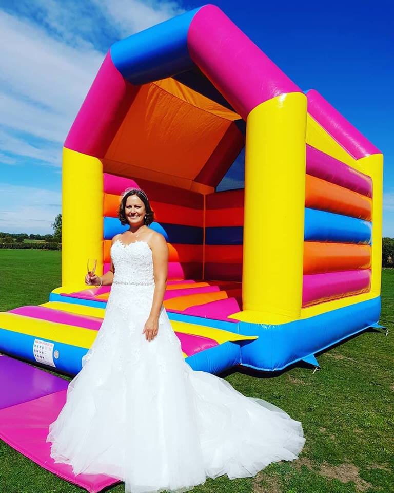 It is very popular to have a bouncy castle at a wedding - something to keep the children entertained whilst the photos are being taken or the speeches are taking place. And of course entertainment for big kids too! Who says the bride can't go on in her wedding dress!